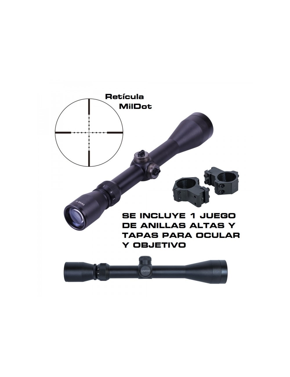 Visor Zasdar 3-9X40 mm. Ret. Mildot no iluminada con anillas 11mm