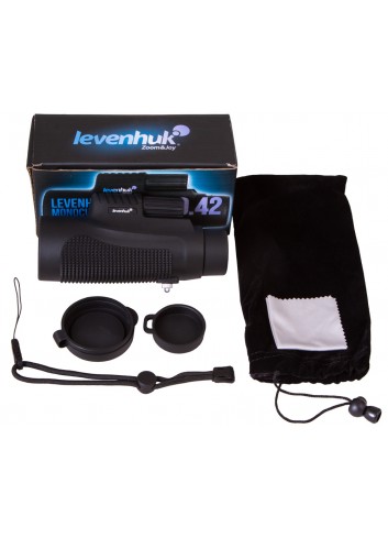 El monocular Levenhuk Wise 10x42 aúna un diseño fiable, un rendimiento óptico excelente y facilidad de uso. Sus modernos prismas de techo y sus lentes de vidrio con recubrimiento multicapa forman imágenes de gran contraste y claridad. No importa la hora del día que sea ni el tiempo que haga, con el monocular Levenhuk Wise 10x42 podrá estar seguro de disfrutar de vistas luminosas y de colores bien saturados. El cuerpo del monocular está recubierto con un material especial antivibraciones que protege a las lentes frente al polvo y las salpicaduras. Este recubrimiento de goma elimina la posibilidad de que el monocular se dañe por golpes mecánicos o vibraciones.