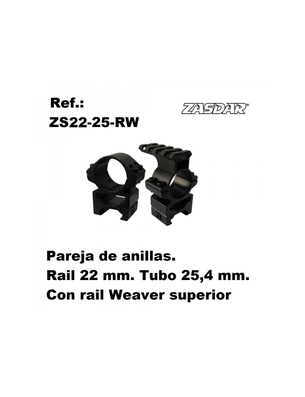 Monturas Zasdar Altura Media Ø25 mm - con raíl Weaver superior - p/ 21 mm (Weaver o Picatiny)