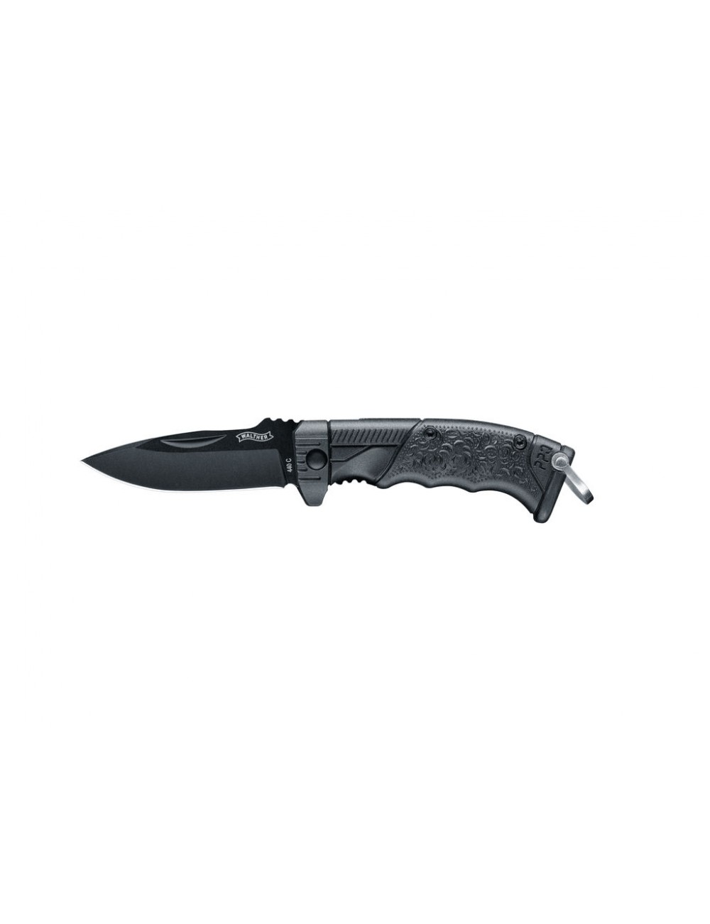 Con sólo once centímetros de largo cuando está abierta y 63 mm de largo cuando está cerrada, la Walther PPQ pesa tanto como una carta estándar. Esta pequeña navaja también hace honor a su nombre de otra manera. Al igual que la famosa pistola Walther PPQ, tiene un acabado superficial miniaturizado Hi-Grip. La hoja de punta de lanza recubierta de negro de 48 mm está hecha de acero de alto rendimiento 440C y se abre con una muesca. Por lo tanto, puede llevar esta navaja compacta en su llavero en todo momento con el ojal adjunto.