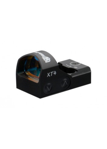 El avanzado y rápido visor de punto rojo XT 4 está fabricado en Japón. Es el hermano menor del ProT4. El XT 4 utiliza la reconocida tecnología óptica y artesanía japonesa. Está hecho de aleación de alta calidad, lo que proporciona una resistencia superior con características ópticas robustas y avanzadas. No tiene paralaje, es resistente al agua y tiene un ajuste de clic con función de bloqueo. La batería está ubicada en una bandeja en el lateral, lo que permite un cambio fácil, sin desmontar. Cuenta con un sistema de iluminación avanzado y ofrece un brillo extremo del punto 3,5 MOA. Al mismo tiempo, la nueva electrónica de pulsos amplía el tiempo de funcionamiento de las baterías. Permite un fácil ajuste de la iluminación y dispone de apagado automático después de 3 horas sin actividad, lo que alarga la vida útil de la batería. Los recubrimientos óptimos y el tamaño de la lente de vidrio ofrecen una imagen perfecta. Un gran visor para tiros rápidos para cazar o para el campo de tiro. Apto para rifles y pistolas.