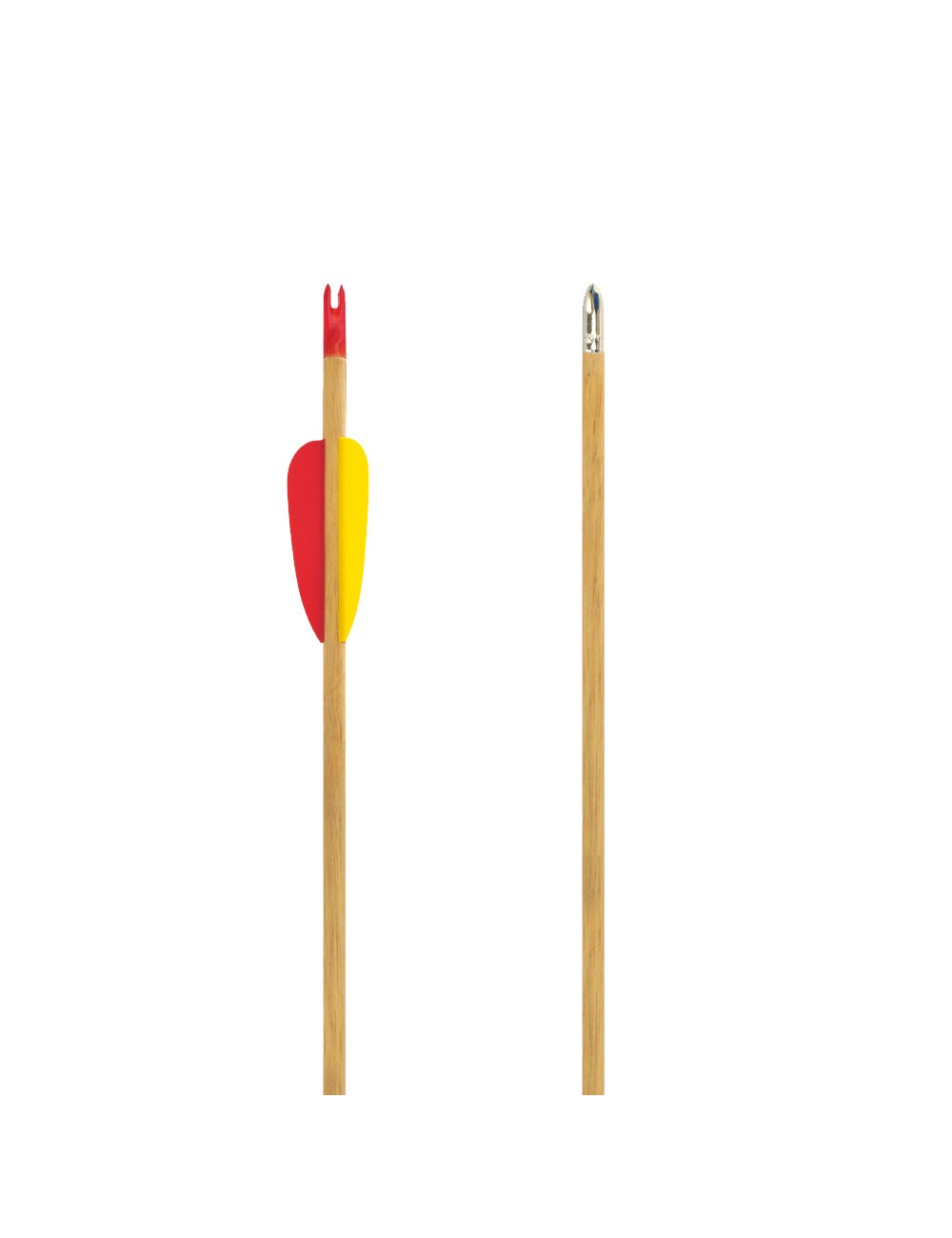 Flecha de madera para tiro con arco recurvado. Se puede usar con arcos infantiles y juveniles.