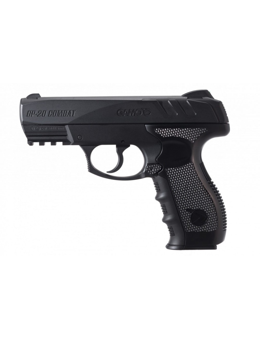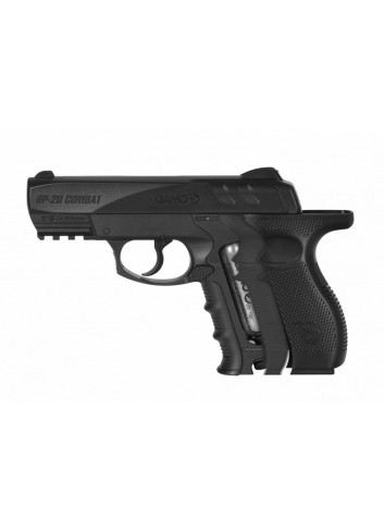 La pistola de CO2 Gamo GP-20 dispone de empuñadura ambidiestra con acabado de textura para mejorar el agarre. Incorpora un cargador BB’s para 20 tiros, por lo que la diversión está garantizada. Es una pistola versátil y compacta recomendada para la práctica de plinking y tiro recreativo.