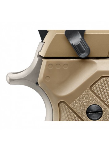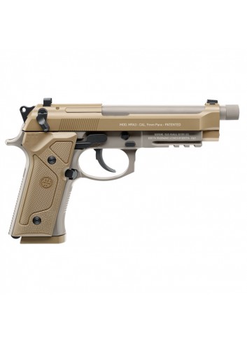 Esta pistola con licencia oficial de Umarex Airguns es una impresionante réplica de la pistola con quemador de pólvora de 9 mm de Beretta; sin embargo, está equipada con un modo especial. ¡Con un simple giro del interruptor en el lado derecho del protector de mano, esta Beretta se vuelve completamente automática! Ya sea que use el interruptor o realice ejercicios con pistolas, disfrutará del realismo del M9A3, desde su exclusivo color FDE y su auténtico agarre y sensación, hasta su deslizamiento realista de la corredera con acción de retroceso. Su cargador de tamaño completo le brinda la posibilidad de practicar recargas y tiene capacidad para un cartucho de CO2 de 12 gramos junto con 18 BB. Su auténtica seguridad hace que esta sea una pistola de aire para tiradores zurdos o diestros, con gatillo limpio, de acción simple o doble, funciona como el quemador de pólvora. Para divertirse con la acción de una pistola de aire comprimido completamente automática, no hay nada como la pistola de aire comprimido Beretta M9A3.