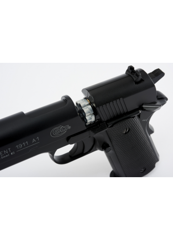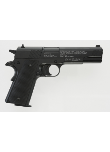 La M1911 fue el arma auxiliar estándar del ejército estadounidense desde 1911 hasta 1985. Se califica como uno de los diseños de pistola militar con más éxito jamás desarrollados. El diseño, el peso y la sensación atemporales del 1911 se incorporan a esta pistola de aire comprimido Colt Government® 1911 A1 CO2. Esta réplica usa bombonas de CO2 de 12 gramos. Tiene un cargador con capacidad de 8 balines y gracias a su cañón estriado tendremos un gran alcance. Las miras son regulables en deriva. Los controles funcionan como los originales. La pistola viene en un maletín de plástico con dos cargadores de 8 balines. Las miras son regulables en deriva. Una réplica del 1911 con todos los detalles de la original.