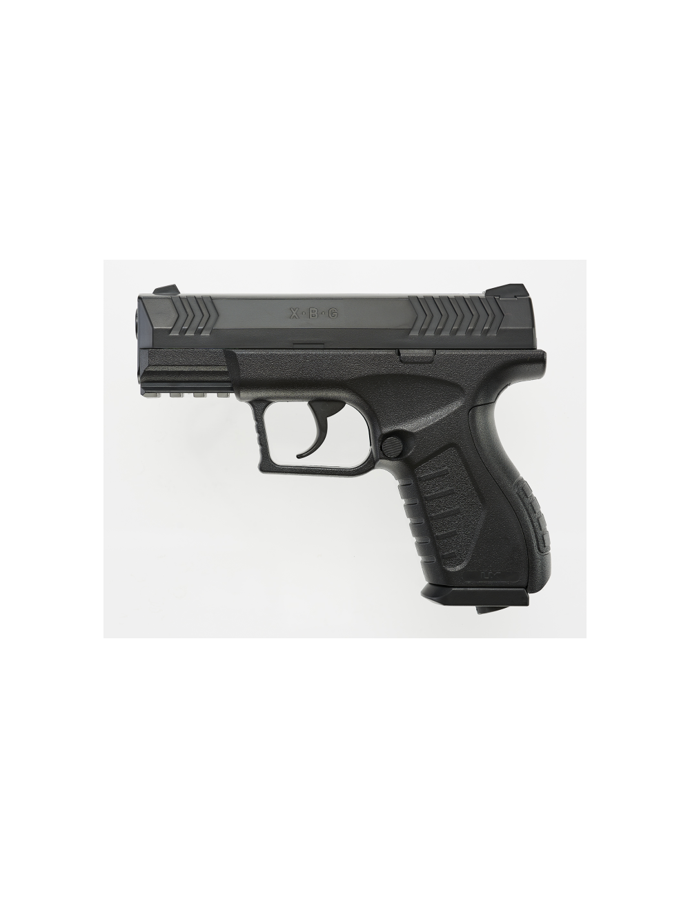 La XBG es una pistola que funciona con bombonas de CO2 de 12 gramos. Su cargador tiene una capacidad de 19 disparos del calibre 4.5mm. Es una pistola muy compacta y podemos llegar a disparar a 410 fps. Su cañón es de ánima lisa y cuenta con sistema de disparo de doble acción. El peso es de 400 gramos y la longitud total de 17 centímetros.
