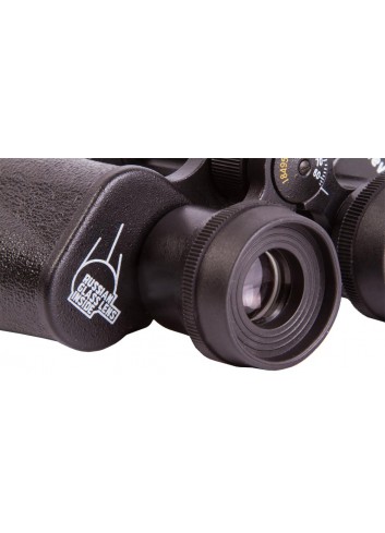 Estos prismáticos utilizan la clásica rueda central de enfoque. Las ojeras están hechas de goma. Puede ajustar la distancia interpupilar así como las dioptrías. El kit incluye una funda protectora hecha de piel artificial y una correa para el cuello.