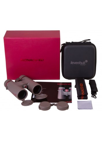 Los prismáticos Levenhuk Monaco ED 10x42 son prismáticos de campo de calidad superior. En su interior encontramos una óptica fabricada con vidrio de muy baja dispersión, y oculares y objetivos formados por varios elementos. Su cuerpo es resistente a los golpes y a condiciones extremas. Son excelentes para hacer observaciones de animales salvajes, pájaros o paisajes urbanos y rurales. Puede utilizar los prismáticos Levenhuk Monaco ED 10x42 en el agua o en sus proximidades, así como bajo condiciones de lluvia o nieve. Estos prismáticos serán muy apreciados por los aficionados al excursionismo, los viajes, la pesca o la caza.