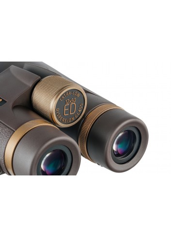 Estos prismáticos presentan prismas techo modernos y elementos ópticos realizados en cristal ED de dispersión muy baja. Las lentes externas están protegidas con varias capas de revestimiento. La óptica permite observar imágenes claras y detalladas a un ampliación de 12 aumentos y examinar objetos distantes incluso en condiciones de iluminación baja (mal tiempo, día nublado, etc.). El esquema óptico utiliza oculares de cuatro elementos de un diámetro de 23 cm. Mejoran considerablemente la calidad de la imagen.