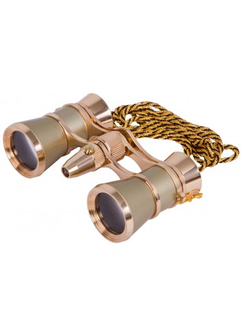 Prismáticos para ópera Levenhuk Broadway 325F (dorados, con luz LED y cadena)