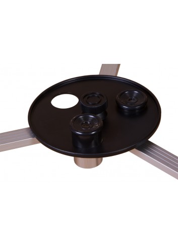 El telescopio se monta sobre un trípode ligero de aluminio. La longitud de las patas es ajustable, lo que permite ajustar el telescopio a la altura del observador. En el trípode se puede instalar fácilmente una bandeja para accesorios. En ella puede colocar oculares adicionales, un mapa estelar, una brújula y cualquier objeto pequeño.