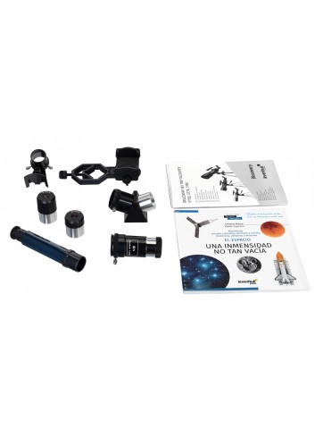 El telescopio Discovery Sky Trip ST70, que viene acompañado de un libro, es un refractor extra-compacto que es perfecto para iniciarse en la exploración del espacio exterior. Con el libro educativo «Space. Non-Empty Emptiness» (El espacio, una inmensidad no tan vacía), el astrónomo principiante podrá aprender información fascinante sobre la observación de las estrellas y poner en práctica ese conocimiento de inmediato. Puede utilizar el telescopio para estudiar la Luna y los planetas, y también utilizarlo como un potente catalejo para observar paisajes terrestres. Incluso serán visibles los objetos brillantes del cielo profundo.
