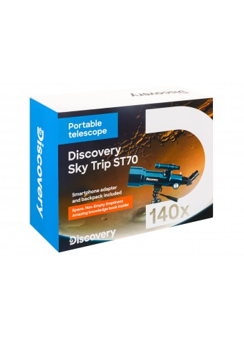 Una característica del Discovery Sky Trip ST70 es el pequeño tamaño de su tubo óptico, lo que hace que destaque respecto a otros telescopios refractores. En comparación con otros modelos similares, el tubo óptico es la mitad de largo que muchos otros. Por ello, el telescopio es fácil de transportar, incluso puede llevarlo consigo en los viajes por carretera. El kit incluye una mochila diseñada para transportar el dispositivo de forma segura, así como muchos otros accesorios. La puesta a punto rápida y sencilla del dispositivo es otra ventaja que será apreciada por los viajeros.