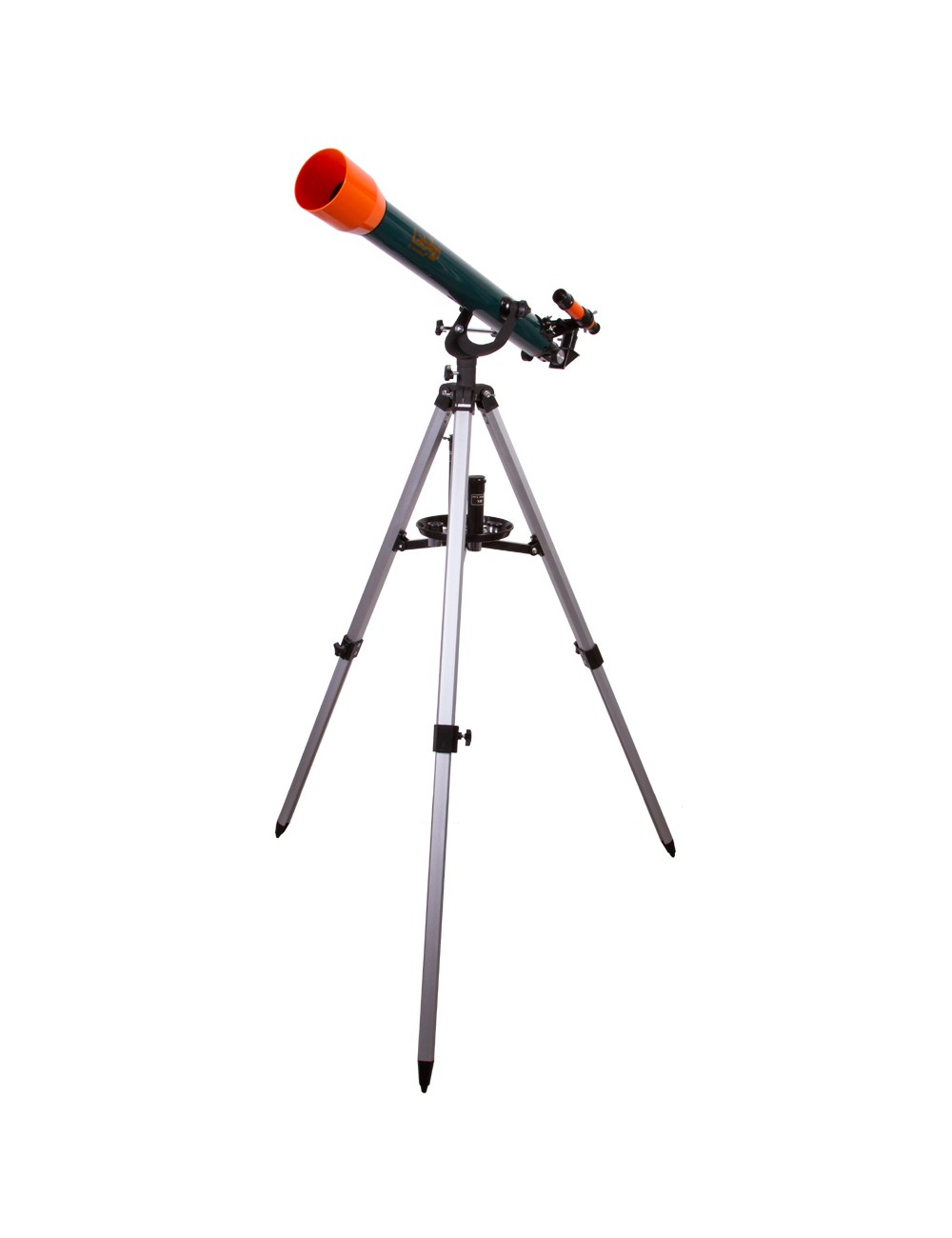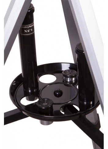 El telescopio se entrega con un potente apuntador de 5 aumentos. La montura azimutal es fácil de usar y no creará ninguna dificultad para apuntar el telescopio hacia un objeto. Su montura de aluminio es estable y soporta de forma segura el tubo óptico sin producir ninguna vibración innecesaria durante las observaciones. El trípode cuenta con una práctica bandeja donde podrá colocar todos los accesorios que necesite. Se entrega también con una lente de Barlow de tres aumentos que hace que su telescopio sea tres veces más potente.