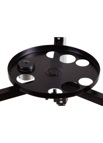 El kit incluye también un trípode de aluminio. Sus patas son de longitud ajustable, lo que permite instalar el telescopio incluso sobre una superficie irregular. Se incluye una bandeja para accesorios.