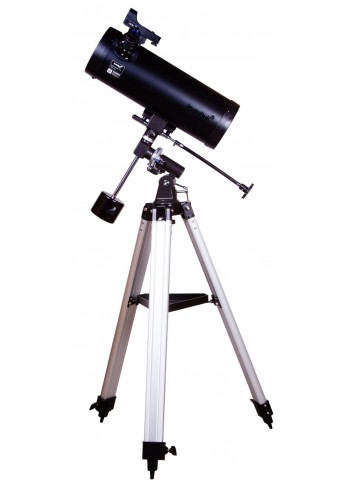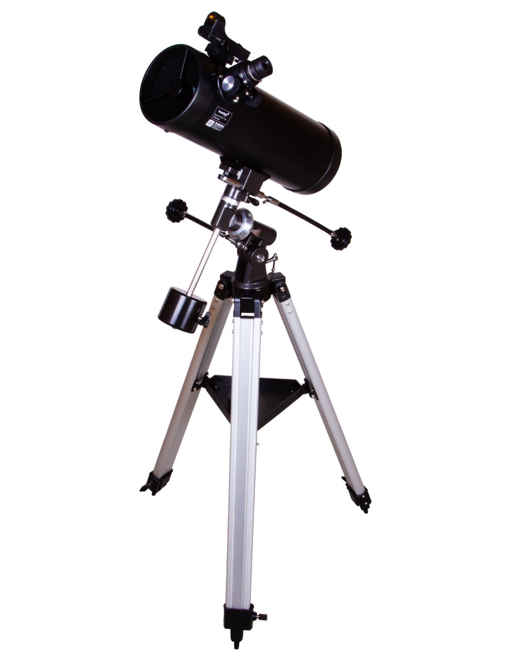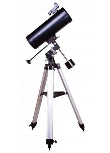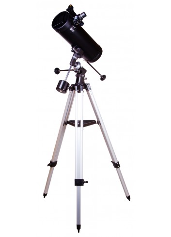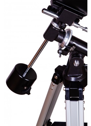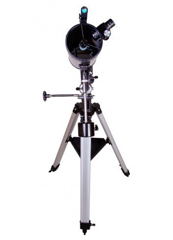 El tubo del telescopio está montado sobre una montura ecuatorial que facilita el seguimiento de los objetos astronómicos. El telescopio es fácil de utilizar. El movimiento del tubo óptico es fluido y uniforme. La montura se fija a un trípode de aluminio. Está equipado con una bandeja para accesorios. Las patas del trípode son de altura ajustable. El telescopio se mantiene estable y se ajusta fácilmente a la estatura del observador.