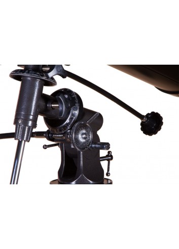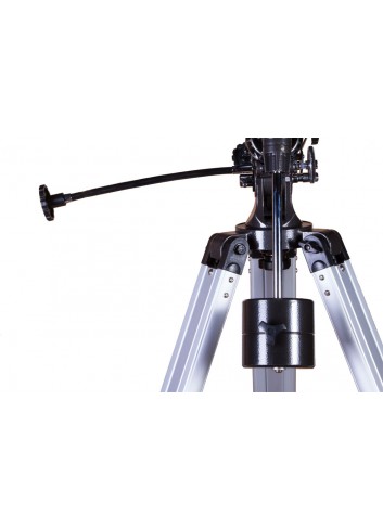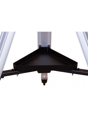 Puede manejar el tubo óptico con la ayuda de una montura ecuatorial. Es un poco más complicada que una montura azimutal, pero permite hacer un seguimiento de los objetos celestes de forma precisa y sin esfuerzo. El aprendizaje de su manejo requiere algo más de tiempo, pero la calidad y comodidad de las observaciones no le defraudarán. La montura se fija a un trípode de aluminio de altura regulable, que se puede ajustar fácilmente a la altura del observador. En el trípode se puede instalar fácilmente una bandeja para accesorios.