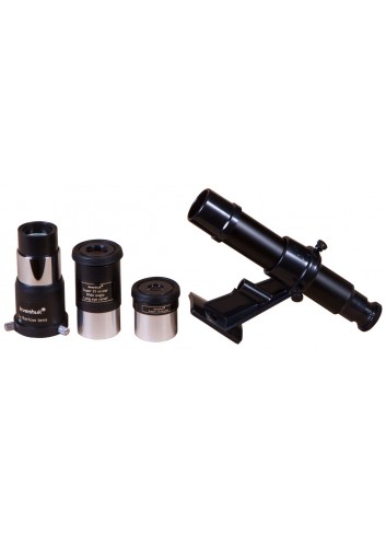 Este telescopio está equipado con un kit ampliado de accesorios ópticos. Un buscador óptico de 6 aumentos permite apuntar el tubo óptico a los objetos celestes. Puede elegir entre dos oculares para obtener la ampliación adecuada para las observaciones. Una lente de Barlow incrementa la potencia de aumento de la óptica. El telescopio Levenhuk Skyline PLUS 130S no requiere hacer compras adicionales, pues el kit incluye todo lo necesario.