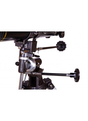 Un tubo óptico del telescopio está instalado en una montura ecuatorial, que es excelente para observar el espacio. Leva tiempo aprender a utilizar el telescopio; sin embargo, el seguimiento objetos astronómicos es simple y práctico. El soporte se mueve suave y fácilmente, el tubo óptico está conectado de forma fiable y duradera. El trípode está hecho de aluminio; la altura de sus patas es ajustable individualmente a la altura del observador. Se incluye una bandeja para accesorios.