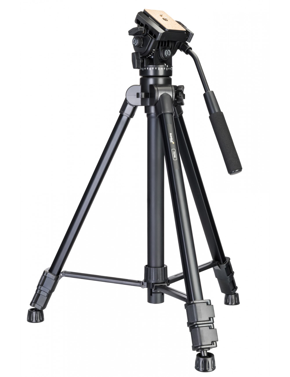 La cabeza del trípode se puede girar 360° horizontalmente para obtener una vista panorámica completa, así como inclinarla hacia arriba y hacia abajo. Puede regular los movimientos del trípode con un práctico mango. Gracias a la placa de liberación rápida, puede quitar rápidamente el dispositivo si es necesario.