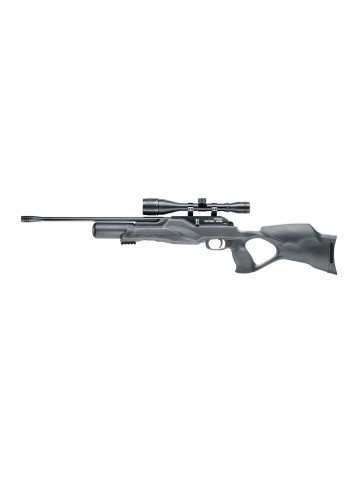 En el interior, encontrará un sistema de aire pre-comprimido fiable, fabricado con precisión, hecho en Alemania. Los balines se disparan desde el cargador giratorio de aluminio de 8 rondas accionando la palanca de carga de generosas dimensiones. El cañón de 500 mm, fabricado por Lothar Walther, asegura una trayectoria estable y tiene una rosca UNF de ½ "para montar un silenciador opcional La energía se suministra mediante un cilindro de aire comprimido de 230 bar con válvula de llenado incorporada y manómetro. El recorrido de la primera etapa del gatillo se puede ajustar para adaptarse a sus preferencias individuales.